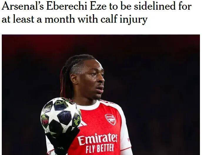 gunnerblog近日透露,阿森纳前锋埃泽因小腿伤势将至少缺阵一个月。目前他还需接受进一步的扫描检查,但初步判断显示,埃泽最少要离开赛场四周时间。这一消息与BBC记者SM报道的一致,不过具体从何时开始计算缺阵周期尚不明确。无论如何,埃泽预计要等到4月底甚至5月初才能复出,届时可能会错过对伯恩茅斯、曼城和纽卡斯尔等关键联赛的多场比赛。球队只能寄望中场核心厄德高尽快回归,承担起队长职责带领球队奋战。目前厄德高正处于休战状态,挪威主帅索尔巴肯表示,他有望在国际比赛日后重返赛场。