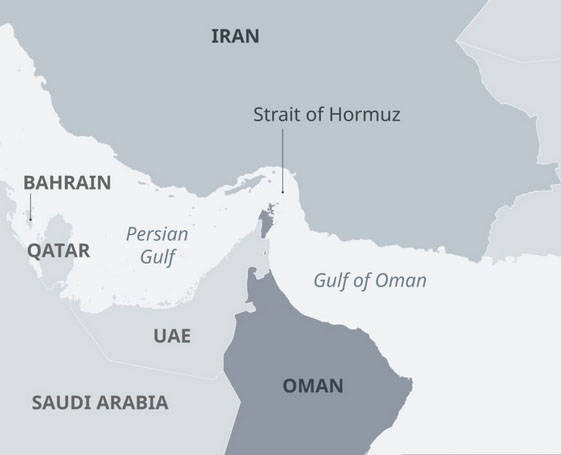 霍尔木兹海峡是波斯湾通往印度洋的唯一通道,伊朗和阿曼领海各占一半,最窄处只有21海里(38.9公里)宽。狭窄的弯道和伊朗海岸一侧的山脉,为伊朗伊斯兰革命卫队监视和打击过往船只提供了极佳的视野。