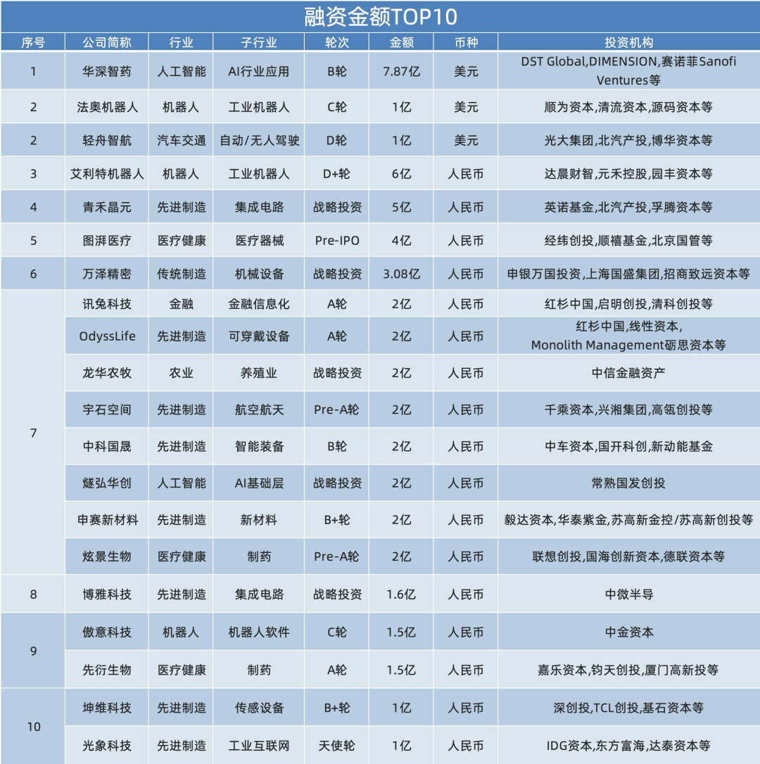 注:未披露具体金额的融资项目、国资控股企业融资项目未纳入本表统计。|数据来源:IT桔子