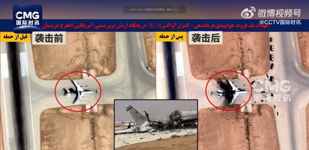 据CCTV国际时讯,伊朗迈赫尔通讯社今天(3月29日)发布据称为美军E-3预警机被击毁的相关卫星图。