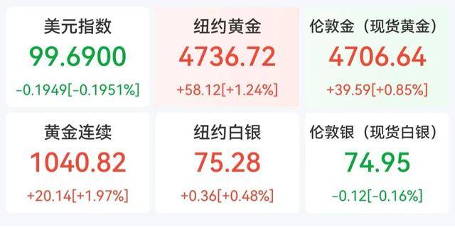 4月1日,现货黄金涨破4700美元,报4706.64美元/盎司,日内涨0.85%,白银在75美元关口徘徊,现报74.95美元/盎司。