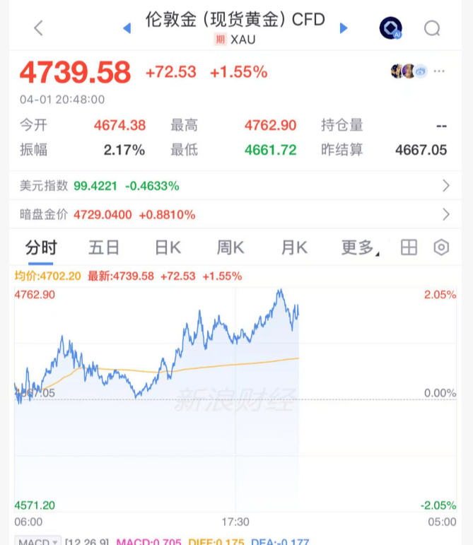 4月1日晚间,黄金价格连续第三天上涨,日内一度涨2%。市场信号显示,中东战争可能接近尾声,交易员的关注点也从加息转向长期经济下行风险。
