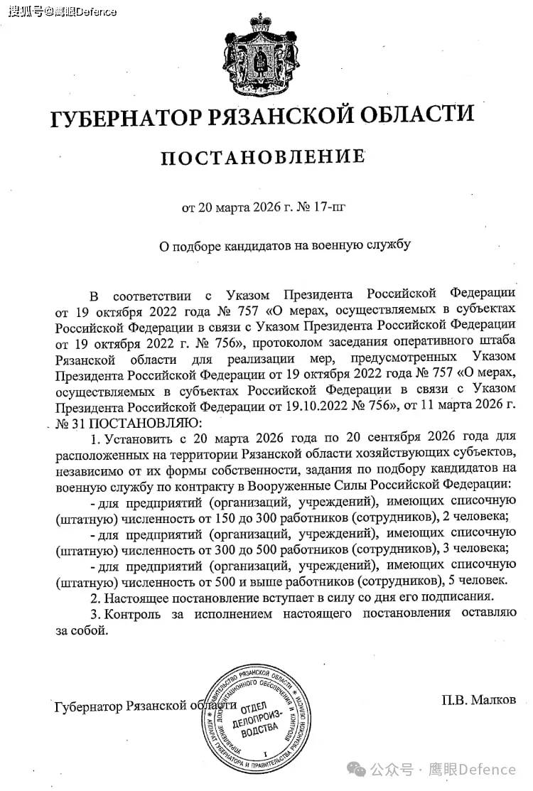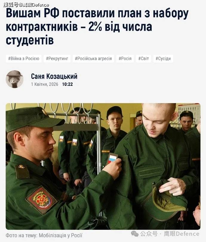俄罗斯的大学校长们被下达了配置指令,要求让至少2%的在校大学航与俄罗斯国防部签署合同服役,确保新生力量满足军队需求;而在梁赞等地,企业则被要求必须完成合同兵的招募计划,任何企业,不分所有制,150到300名员工必须提供两人参军,300到500名员工需提供三人,500名员工以上的企业需提供五人。