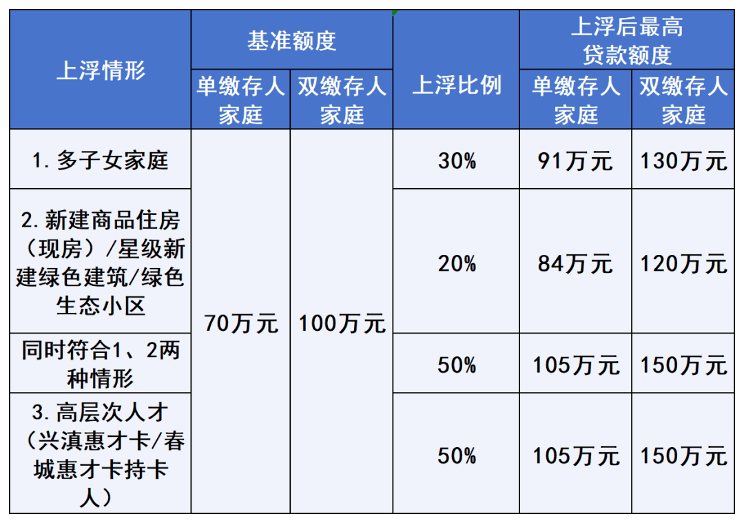 (三)高层次人才(含兴滇惠才卡、春城惠才卡持卡人)购买首套及第二套住房的,住房公积金贷款最高额度上浮50%。