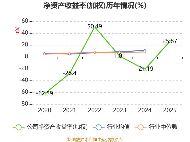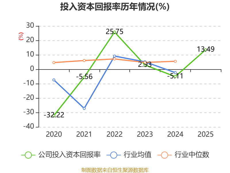 数据显示,2025年公司加权平均净资产收益率为25.87%,较上年同期上升47.06个百分点。公司2025年投入资本回报率为13.49%,较上年同期上升18.6个百分点。