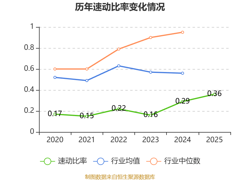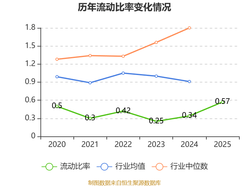 2025年,公司流动比率为0.57,速动比率为0.36。