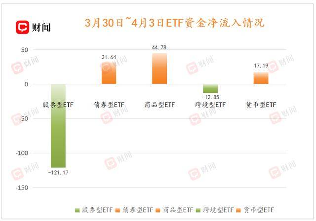 上周,全市场ETF整体呈现净流出状态,净流出额40.42亿元。受市场波动影响,股票型ETF资金流出金额最多,达到121.17亿元,跨境型ETF也出现了12.85亿元的资金净流出。而债券型、商品型和货币型ETF均实现资金净流入,金额分别为31.64亿元、44.78亿元和17.19亿元。