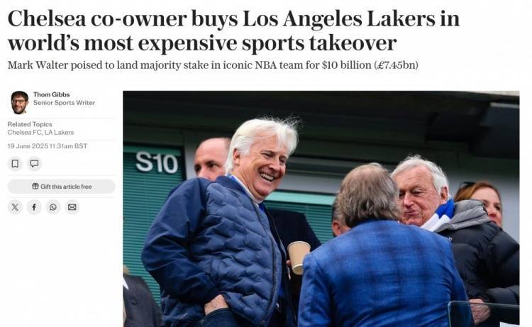 直播吧6月19日讯 据电讯报报道,切尔西共同所有者马克-沃尔特将以100亿美元(74.5亿英镑)收购洛杉矶湖人,创全球最昂贵体育收购纪录。