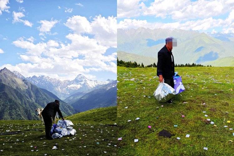 “你们插的旗子能带上来,就不能带下去吗?你们的氧气罐、一次性雨衣、水瓶、零食袋,不能带下去吗?一个个都是健身的,连个垃圾都拿不动?”6月30日,有网友发帖称,成都一家健身俱乐部二百多人到理县米亚罗镇猛古雪山斯博顶搞团建活动,但在活动结束后留下一地垃圾。该网友还称:“山顶的大叔捡了一下午,把垃圾集中处理烧到晚上也没烧完。还有氧气罐那么多,大叔说先捡起来改天再背下去,这么干净的一座山被你们一天就搞成这样,良心不痛吗?”