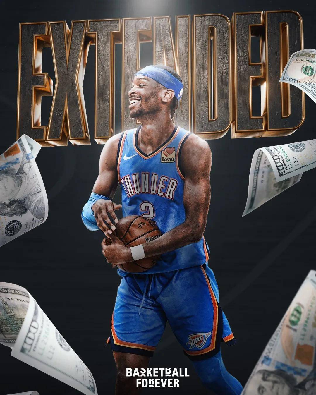上赛季亚历山大实现了大满贯,总冠军&FMVP&MVP&西决MVP&得分王&最佳阵容一阵等等全部到手,现在又拿到了4年2.85亿美元超级顶薪,今年对他来说相当有滋有味,彻底走上了人生巅峰。