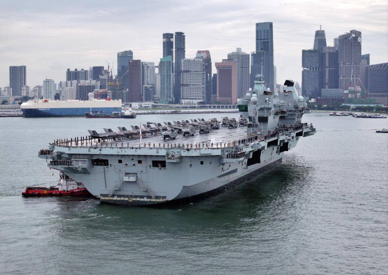 在这敏感时刻,新加坡亚洲新闻网、《海峡时报》等媒体报道,英国海军“伊丽莎白女王”级航空母舰“威尔士亲王”号(R09)于当天抵达新加坡,停靠在其南部的滨海湾游轮中心(MBCC)码头,航母编队中其他舰艇则停靠在附近的新加坡海军基地。英国国防部同日发推称,“威尔士亲王”号当天抵新加坡,将通过联合训练和军事互动加强与地区盟国的关系,展示“英国对‘印太地区’和平与安全的承诺”。