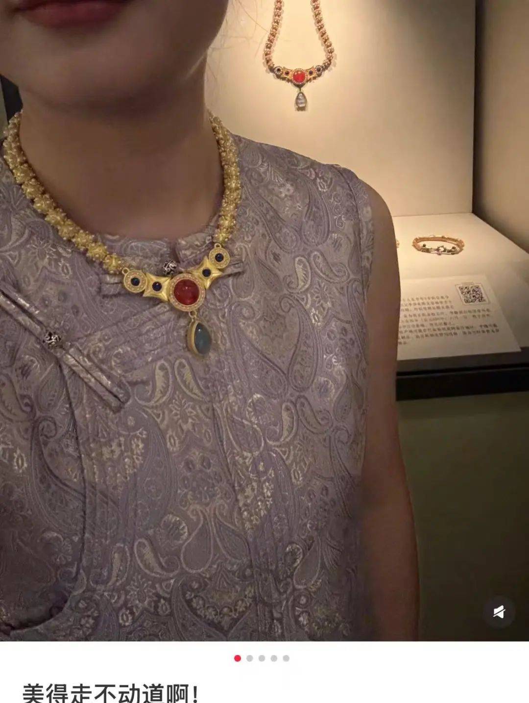 甚至有一些明明不缺钱、还戴着老铺黄金手镯的贵妇,看到博物馆里的首饰也走不动道了。博物馆里的首饰文创,设计灵感大多来源于展览里珍稀的国宝,样式比外面的专柜新奇多了。国博的黄金花项链,花瓣甚至还能一开一合,有两种戴法。看了博物馆里的首饰,甚至开始怀疑专柜里收的工艺费,到底是不是智商税。”