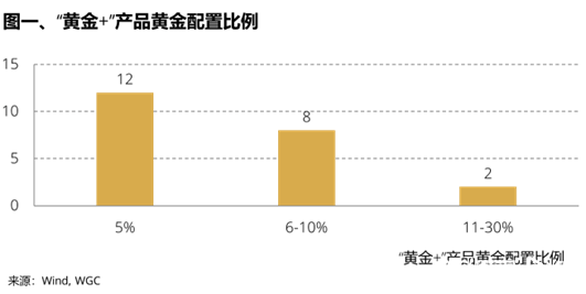 什么是“黄金+”?据世界黄金协会介绍,狭义的“黄金+”指的是一类具体产品,业绩基准或资产配置策略中配置5%以上黄金的多资产组合称为“黄金+”产品。目前,公募基金(含FOF及养老FOF)和银行理财市场已出现各类配置了黄金的“黄金+”产品。市场上有公开数据的“黄金+”产品,大部分配置了5%至10%的黄金,个别产品黄金配置比例达到30%。