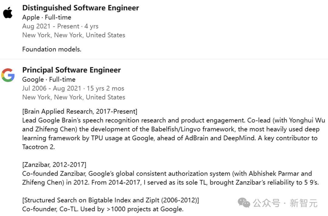 2021年,庞若鸣正式加盟苹果,任杰出软件工程师,领导基础模型研发团队(AFM)。