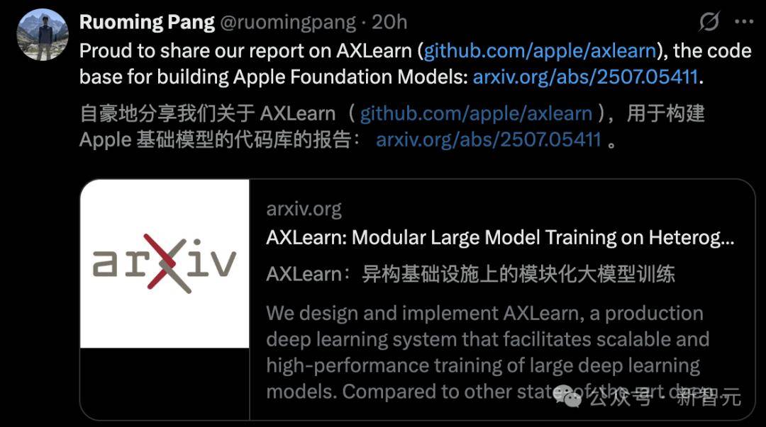他便是——庞若鸣,前苹果AI/ML基础模型团队负责人。