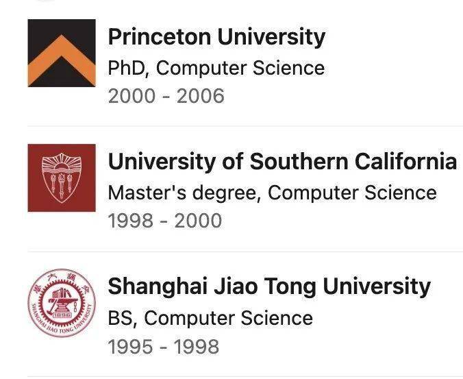 公开资料显示,庞若鸣本科毕业于上交大,主攻计算机科学。随后,他在南加州大学、普林斯顿大学完成了硕博学位。