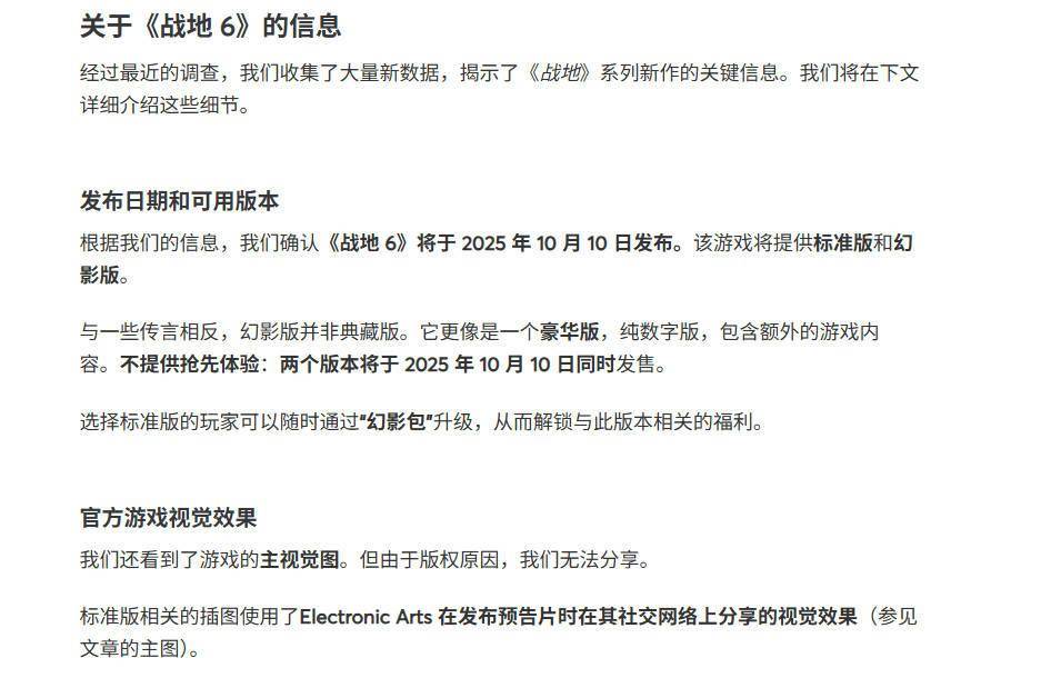 虽然今年5月初时,EA明确表示不跟随潮流将游戏涨价到80美元,但由于该公司全力押注《战地6》,甚至不惜暂停了《钢铁侠》、《极品飞车》等游戏的开发,光是开发成本就超过了4亿美元,另外还有同样烧钱的市场宣传,在海量的支出成本面前,EA要食言了。据坤哥@billbil-kun爆料,《战地6》将是EA首款定价80欧元的游戏,高级版本的定价甚至达到了恐怖的110欧元,10月10日发售,和昨晚的传闻一致。