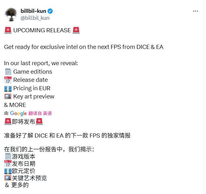 坤哥还指出,《战地6》将于7月31日星期四开放预购。