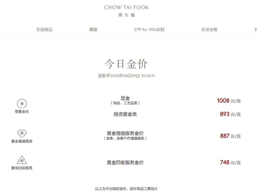 月进行公开调价,目前黄金价格较彼时已有明显上涨。除金条外,其余产品均会涨价,不过涨幅可能会有不同。