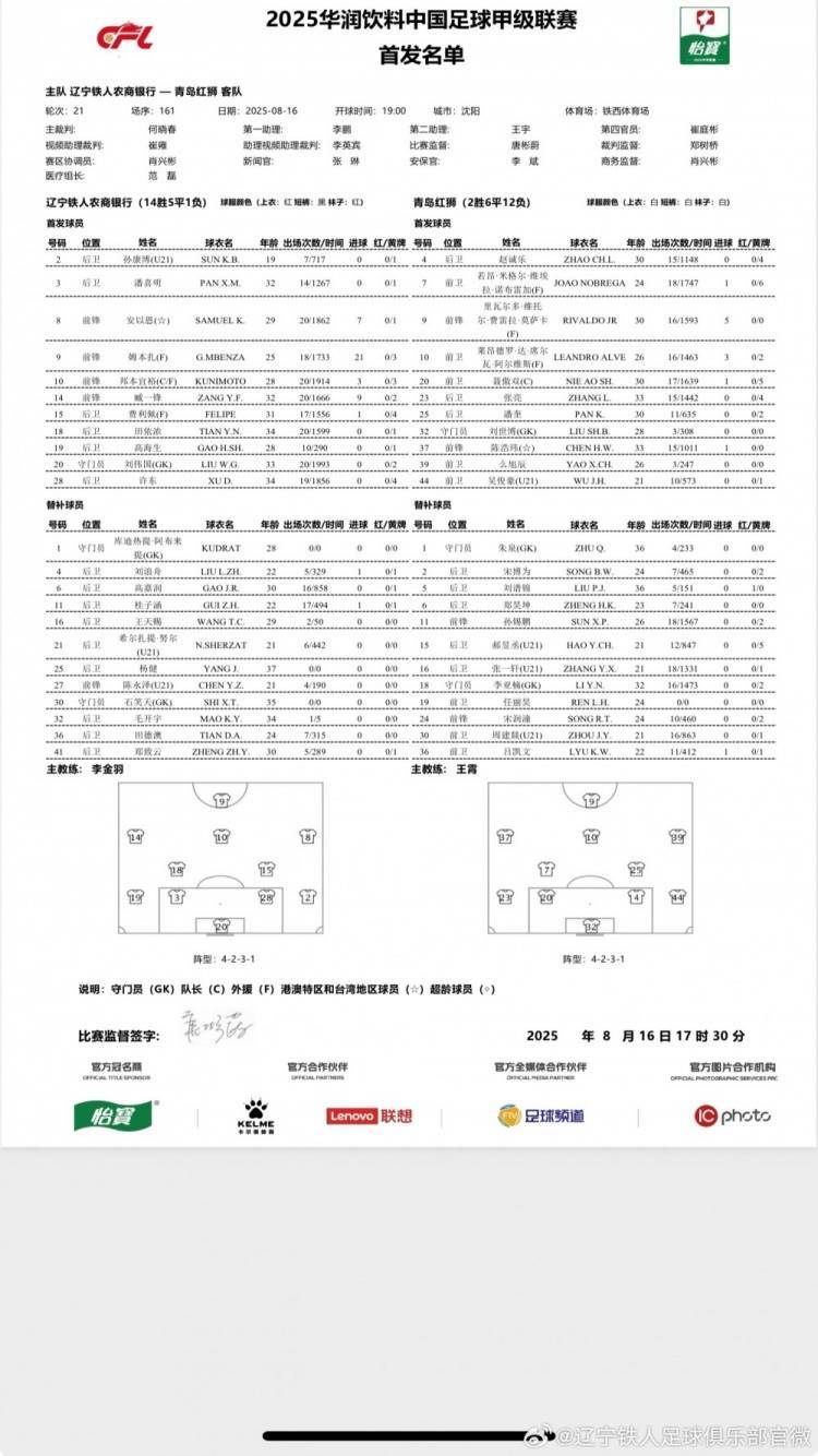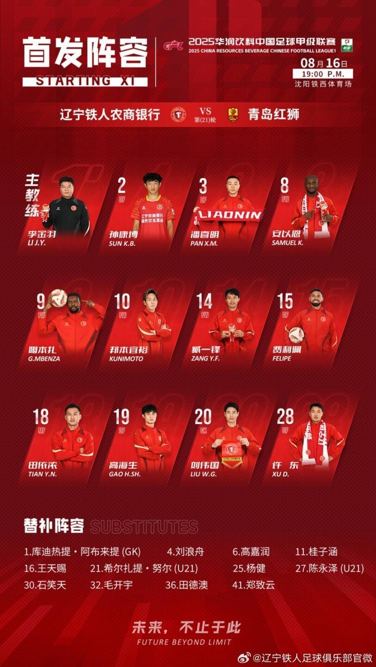 辽宁铁人农商银行VS青岛红狮 首发名单!