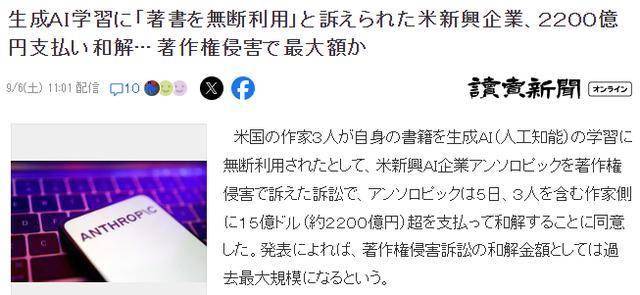 ·9月5日美国加州联邦地方法院审理了这期案件,具体的和解金额根据依靠AI生成发行的盗版书籍50万册,每本3000美元金额计算,和解金达到了15亿美元之巨。