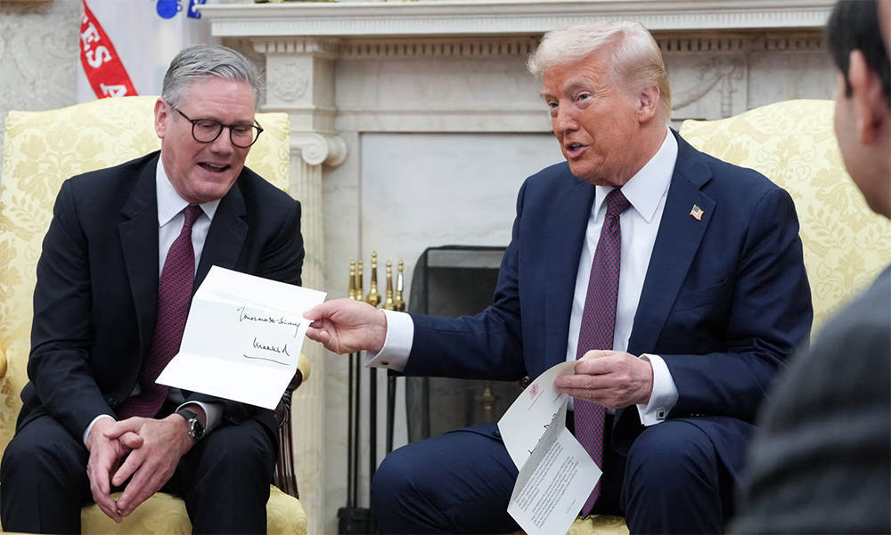 当地时间2月27日,斯塔默向特朗普转交查尔斯三世的国事访问邀请信。英国《卫报》