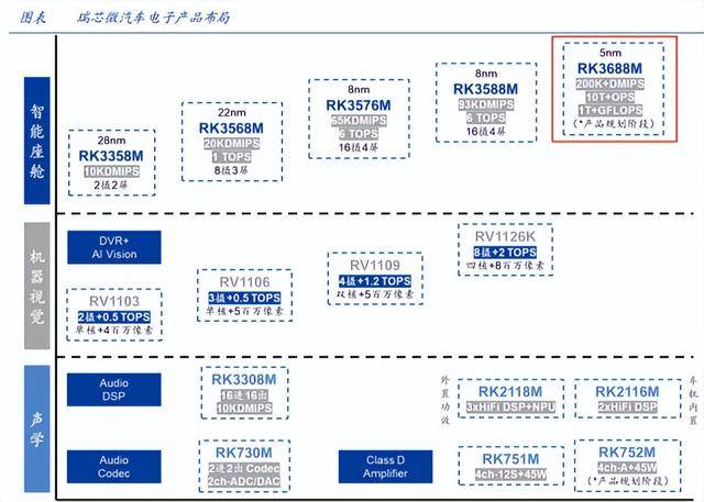 瑞芯微正在研发RK3688M芯片,预计制程工艺可提升到5nm节点,将接棒RK3588M,进一步拓展汽车电子和机器人市场。