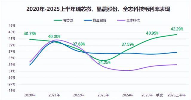 净利润方面差距更为明显。2025年上半年,瑞芯微净利润4.50亿元,全志科技仅为1.61亿元,还不到瑞芯微的40%。