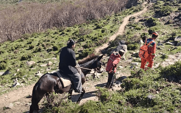 了解情况后,救援人员联合属地民警,与当地向导共同制定搜救方案,携应急物资上山搜救,并于16时48分安全护送其至山下,交予家属。