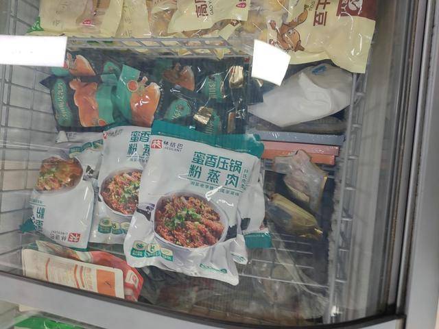 “小扣肉有没有,现在这个太大。”一家预制菜商铺内,有饭店老板正好来进货,他从冰柜里拿了几盒扣肉,约400克,售价28元。正要结账离开,又突然想起来,最近需要一些小份的,“我现在弄了点盖饭,这个扣肉太大,每次还要扒拉出来,分成几份。”