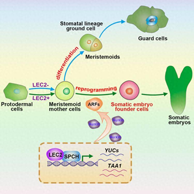 植物体细胞重编程形成全能干细胞的分子调控网络。受访者提供