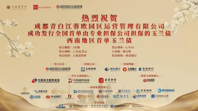 近日,恒丰银行协助成都青白江蓉欧园区运营管理有限公司成功发行“玉兰债”,发行规模1.56亿美元,发行期限3年期,发行利率6.95%。恒丰银行中标2700万美元。该笔“玉兰债”是全国首单由专业担保公司担保的“玉兰债”,也是西南地区首单“玉兰债”。