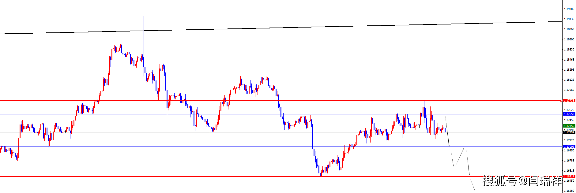 从多周期分析,从月线级别来看,欧美受撑于1.1100位置,所以价格在此位置之上长线多头对待。从周线级别看价格受撑于1.1700区域的支撑,此位置是中线走势的多空分水岭,本周重点关注周线收盘能否收在此位置之下是关键。从日线级别,日线上是我们强调波段走势的关键,目前日线阻力于1.1755位置,价格在此位置之下持续看承压。从四小时看,在周初价格于四小时支撑上方短线震荡调整,但是在昨日价格已经跌破四小时关键支撑,则前期支撑变阻力,目前四小时阻力于1.1735位置,价格在此位置之下持续看承压,后续关注周线1.1700得失,一旦下破关注后续持续延续。