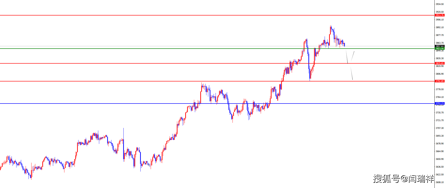 从多周期分析,首先观察月线节奏,从长线上看3130位置是长线走势的分水岭,价格在此位置之上长线多对待即可。从周线级别看,目前周线多空分水岭于3490位置,价格在此位置之上中线多对待即可。从日线级别看,暂时需要关注3752区域支撑,此位置之上波段多对待,目前继续右侧交易方式对待。从四小时上看,观察黄金上涨节奏中,近期上涨价格拉升170点左右后出现承压,从修正空间看几乎在70美金左右,从3716区域拉升至3895看已经超过170美金,如若按照回撤算的话在3825区域。目前四小时价格有下破3853短线分水岭的表现,一旦下破则关注进一步承压对待,在没有下破前谨慎布局。一小时上价格目前下跌同样还是延续中,所以后续关注下破后进一步延续表现。