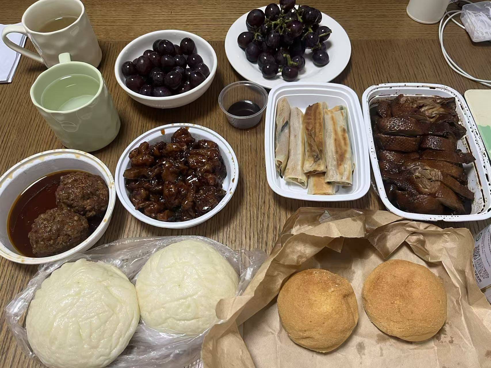 9月中旬,路过杭州新天禧大酒店,林希元发现戴白色高帽的厨师正支棱着挡雨棚,张罗摆摊卖快餐。她扫码进群,预定了饭菜,让丈夫晚上去取。花97块钱,能吃到半只卤鸭、糖醋里脊、红烧狮子头还有三种面食。再配上中午家里炒的素菜,就是一顿丰盛晚餐。