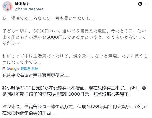 另一位网友则算了一笔账:“一个孩子一个月想追三四本连载,差不多要3000日元。可现在一个家庭的可支配收入没涨多少,怎么可能像以前那样随便买?”