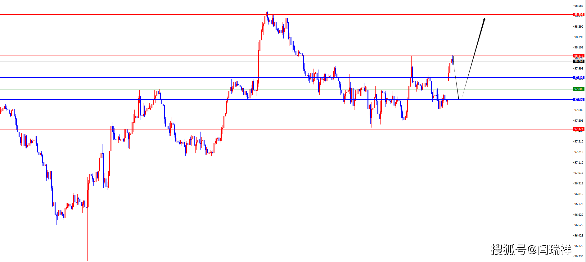 美指97.70-80区间多,防守5美金,目标98.20-98.50
