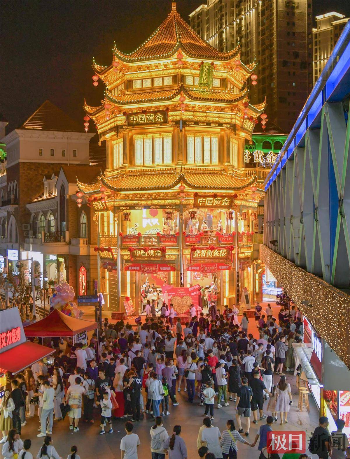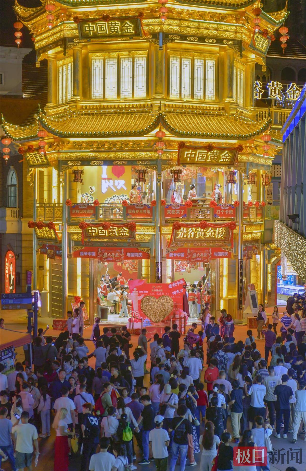 这个国庆中秋长假,武汉光谷步行街上的黄金楼成了市民游客的热门打卡点!截至2025年10月7日,国内黄金价格持续上涨,足金饰品价格达1155元/克,较10月1日上涨26元/克。金价上涨,更加激发了光谷步行街黄金楼的人气。当晚,光谷步行街黄金楼灯光璀璨,金碧辉煌,人如云集,许多人都在这里拍照留念,进店询价看货的消费者络绎不绝。