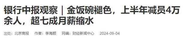 北京商报《银行中报观察|金饭碗褪色,上半年减员4万余人,超七成月薪缩水》