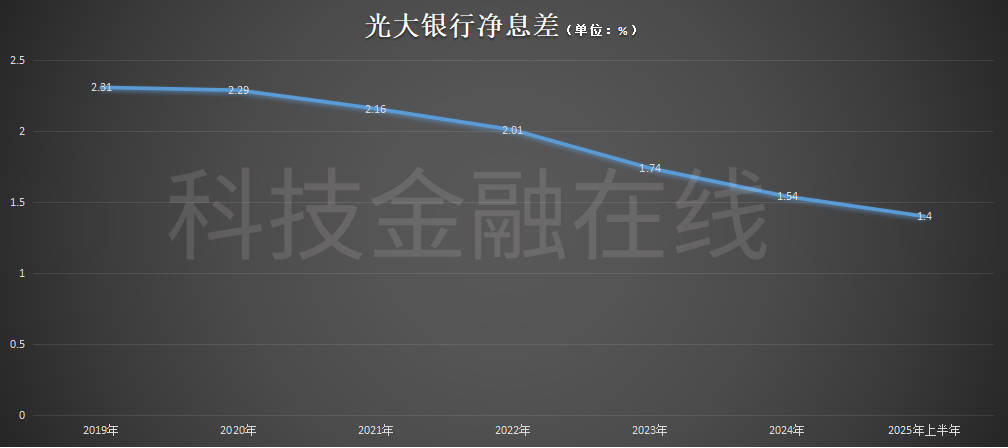 相比于2024年底,光大银行净息差下跌了0.14个百分点,在股份制银行中,跌幅最大。