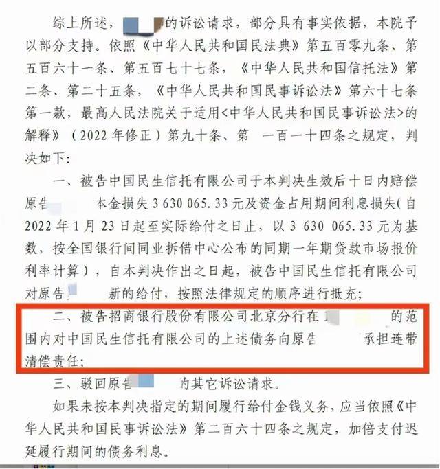 21世纪经济报道记者了解,最终银行要对该笔信托应付债务的4%承担连带赔偿责任。