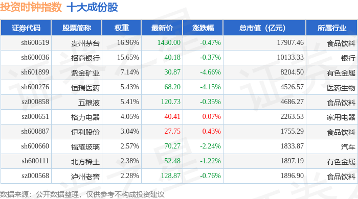 证券之星消息,10月10日,投资时钟(399391)指数报收于3363.02点,跌0.85%,成交1305.22亿元,换手率1.32%。当日该指数成份股中,上涨的有59家,江西铜业以7.84%的涨幅领涨,下跌的有36家,湖南黄金以4.82%的跌幅领跌。