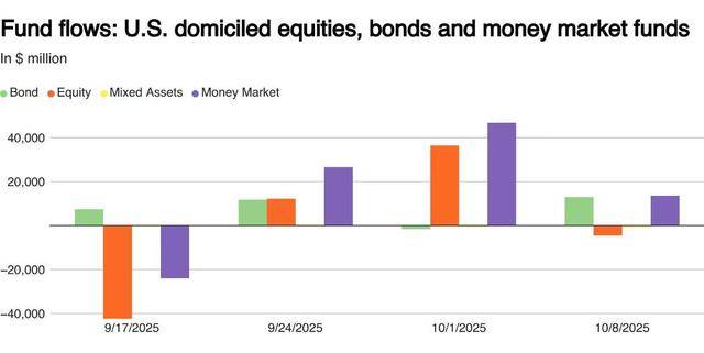 据路透社10月10日报道,截至10月8日,美国投资者三周来首次减持股票基金,因对美国政府持续停摆带来的风险上升持谨慎态度,投资者更愿意从近期涨势中获利。