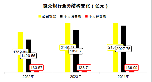 这意味着,微众银行的企业贷款规模历史上首次超越消费贷规模。