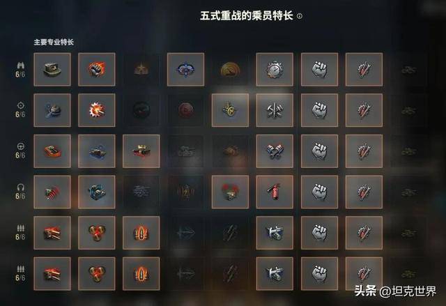 在坦克技能方面,可以依照上图所示选择。重型坦克的基础技能就是修理、兄弟连、紧急应对、熟能生巧、如履平地、短兵相接等技能,除此之外也可以在快速转弯、机械达人等技能上进行选择。五式重战的“肩膀”虽然厚度较高,但是这里也相对薄弱,敌人会集中攻击此处,容易造成弹药架损坏,因此非常推荐学习“弹药规整”以强化弹药架模块生命值,提升坦克的战斗力。