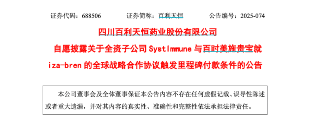 公告显示,根据合作协议,公司后续还有资格获得最高可达2.5亿美元的近期或有付款,以及在达到特定的开发、注册和销售里程碑后最高可达71亿美元的额外付款。合作协议中所约定的里程碑付款需要满足一定的条件,最终里程碑付款尚存在不确定性。