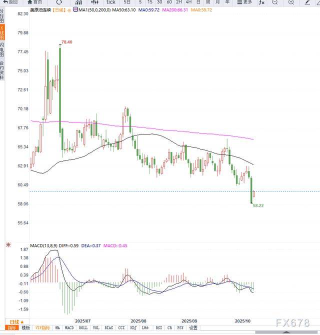 若价格未能稳固于60美元上方,反弹或难以延续。下方支撑区间关注59.30—58.50美元。整体而言,技术面偏弱修复格局,短期操作仍需谨慎。