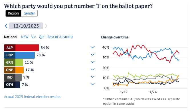代表澳洲极右势力的一国党的首选票支持率,在再次攀升后达到了史无前例的12%,甚至超过了代表极左势力的绿党的11%。