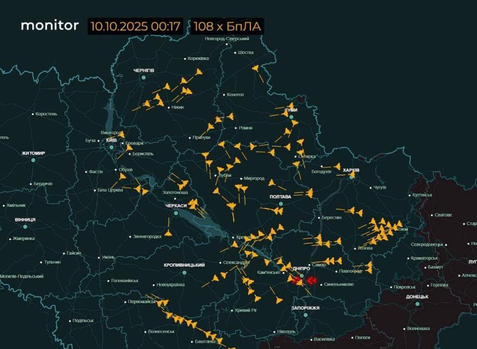 这段时间,俄军空袭乌克兰的强度在持续加大,在10月9日,乌克兰第聂伯罗市遭到俄罗斯空天军数苏-34轰炸机投放的滑翔制导航空炸弹轰炸,这是战争中的头一次。乌克兰第聂伯罗市距离前线120公里,这意味着,俄军滑翔制导航空炸弹至少飞行了120公里。在乌克兰北部切尔尼戈夫州普里卢基地区的一处油库遭到俄军发射的伊朗小摩托,沙赫德-136自杀式无人机袭击后,发生了大爆炸,之后起大火。