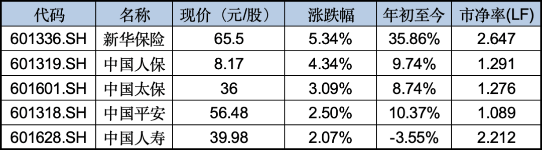 新华保险领涨保险板块,盘中涨幅一度超过7%,收涨5.34%,中国人保紧随其后,上涨4.34%。